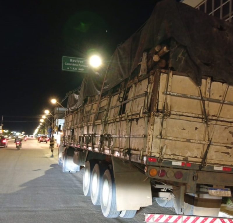 43ª CIPM: Guarnição do PETO apreende carreta carregada de eucalipto furtado e que estava em aldeia indígena