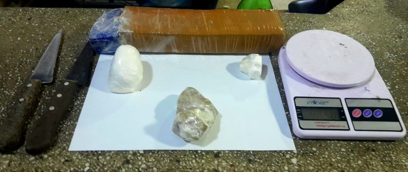 Guarnição do PETO da 44ª CIPM estava em rondas ostensivas táticas na noite desta terça-feira, 24 de fevereiro, pelo Bairro Uldurico Pinto na cidade de Medeiros Neto, quando ao passarem pela Rua Vasco da Gama, em frente a uma residência, onde havia sido realizada a apreensão de drogas e de um foragido da Justiça por homicídio e tentativa de homicídio. Os PMs perceberam a movimentação de uma pessoa correndo para os fundos do imóvel, o que levou os militares a desembarcarem e realizarem um cerco aos fundos do imóvel, onde existe uma plantação de bananeira, que ao fazerem a incursão, encontraram a pessoa de “Laís Jesus Franco”, 19 anos, com uma mochila preta em uma das mãos, momento em que lhe foi dada a voz de abordagem. Ao verificarem o interior da mochila, foi encontrado um tablete de maconha (1 Kg); 02 porções de cocaína (128 gramas); 02 pedras de crack (102 gramas); 02 facas; 01 balança de precisão.