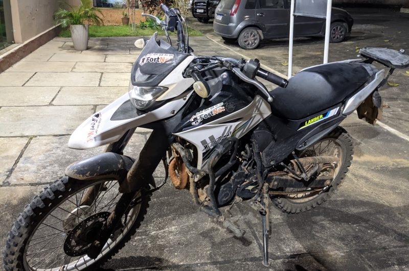 A segunda motocicleta, modelo Yamaha/XTZ 250, cor branca, ostentando placa QJN 7D76, também foi averiguada pelos policiais militares no referido distrito. Ao verificar os demais sinais de identificação, a mesma teria como placa original LUJ 7J68, que teria restrição de roubo/furto, no Estado de São Paulo. Ao ser procurado também o possuidor da mesma, um homem identificado pelas iniciais (E.S.J.), 46 anos, se apresentou como sendo o responsável pela motocicleta, porém a mesma seria pertencente à empresa em que ele trabalha, e que ela estaria sob a sua responsabilidade para a atividade profissional.