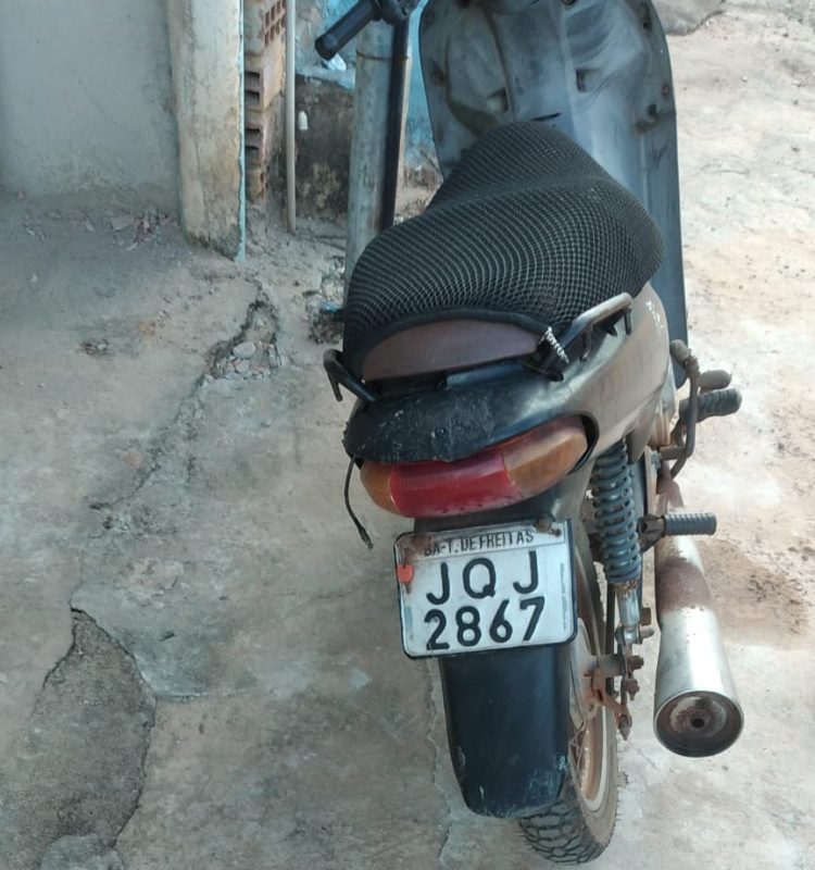Policiais da Ronda dos Distritos (Rural) estavam em patrulhamento no final da tarde deste sábado, 14 de março, no distrito de Santo Antônio, município de Teixeira de Freitas (BA), quando, ao passarem pela Avenida Presidente Getúlio Vargas (principal), avistaram uma motocicleta modelo Honda/Biz 100C, cor preta, ostentando placa JQJ 2867, que estava com o lacre da placa rompido, motivando-os a realizarem a conferência dos sinais identificadores. A pessoa que estaria de posse da referida motocicleta não teve o nome divulgado, somente a idade de 45 anos, que também foi abordada.