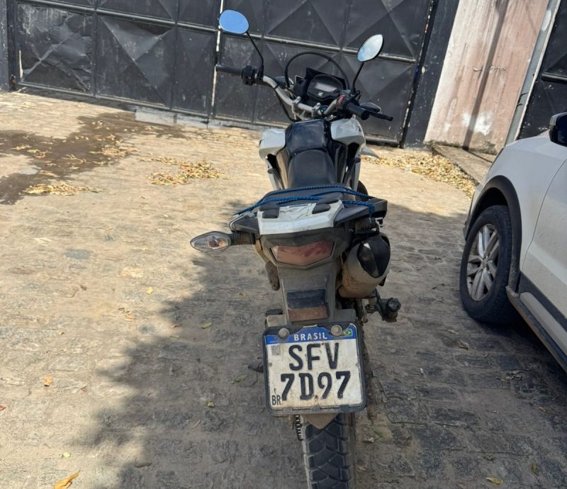 Policiais do PETO da 87ª CIPM de Teixeira de Freitas (BA) estavam realizando rondas na zona rural do município na manhã desta segunda-feira, 29 de dezembro, quando avistaram um motociclista na estrada vicinal onde eles estavam passando, sendo dado sinal de parada para ele, que obedeceu, e ao ser abordado foi identificado, tendo apenas a sua idade divulgada, sendo de 27 anos. Já ao fazerem uma breve vistoria na motocicleta modelo Honda/NXR Bros, cor branca, ostentando placa SFV 7D97, ao observarem os demais sinais identificadores, foi percebido que haveria suspeitas de possíveis adulterações, e, ao ser questionado sobre a procedência da mesma, ele informou que estava prestando serviço para uma segunda pessoa, que seria o proprietário dela, e que ele desconhecia tal situação.