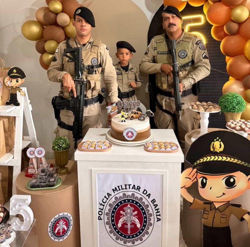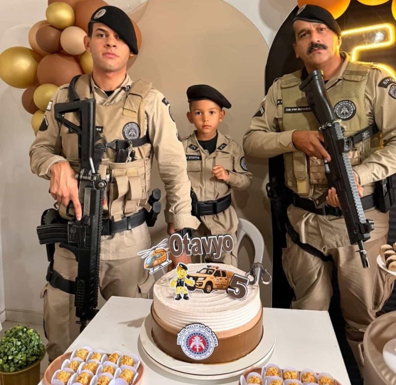 No último domingo, 22 de fevereiro, a guarnição do 2º Pelotão da 87ª CIPM protagonizou um momento especial no bairro Liberdade I, em Teixeira de Freitas, ao participar do aniversário do pequeno Otavyo, que comemorou seus 5 anos de idade. Morador da localidade, Otavyo é um declarado fã e admirador da Polícia Militar e, mesmo tão jovem, já afirma que deseja ser policial militar quando crescer. Sensibilizada com o sonho do aniversariante, a guarnição, comandada pelo Cabo PM Rogério, realizou uma ação que marcou a data de forma inesquecível.