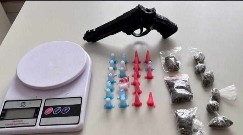 Guarnição do PETO da 89ª CIPM estava em patrulhamento na tarde desta quarta-feira, 13 de agosto, quando, ao passarem pela Rua Madureira, no Bairro Jardim Madureira, situado no distrito de Itabatã, município de Mucuri (BA), avistaram dois suspeitos, que, ao perceberem a presença da viatura, entraram em fuga, correndo a pé, vindo a se separarem durante a fuga, no qual os PMs avançaram de forma rápida, direcionando-se a um dos suspeitos, logrando êxito na sua interceptação e abordagem, sendo identificado como “Marques Monteiro dos Santos”, 24 anos, que estaria com certa quantidade de entorpecente, uma balança de precisão e um simulacro de arma de fogo. Os policiais militares lhe indagaram sob a identificação do seu comparsa que teria conseguido fugir em outra direção, o mesmo o identificou como sendo a pessoa com as iniciais do nome (F.S.S.), vulgo “Dentinho”, que teria envolvimento com o tráfico de drogas naquela localidade, e que teria acabado de receber uma carga de drogas das mãos do traficante de nome “Paulo Gomes de Oliveira”, vulgo “JP”, 24 anos, que seria já conhecido das Forças Policiais daquele município, no qual teria em seu desfavor um mandado de prisão por tráfico de drogas, associação ao tráfico, porte ilegal de arma de fogo, e associação ao tráfico de drogas, pois ele também faz parte da organização criminosa (grupo) ligado ao Comando Vermelho (CV), que disputa a área territorial para o tráfico naquele município.