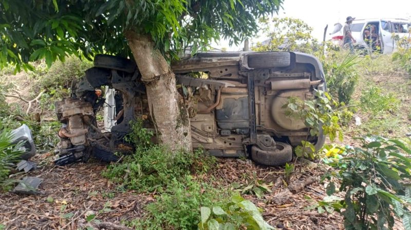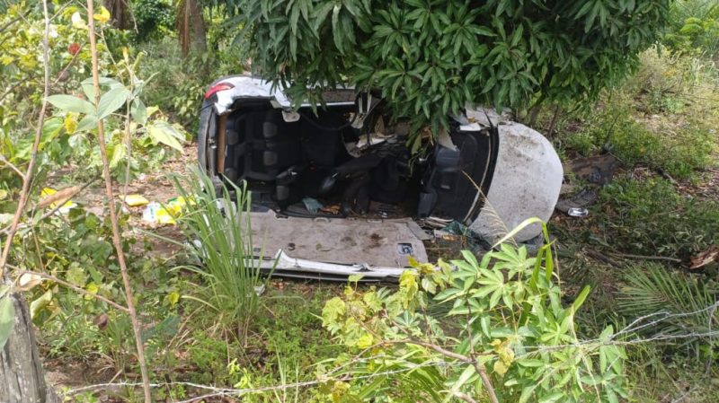 Equipe do plantão da Polícia Rodoviária Federal – PRF do Posto de Teixeira de Freitas (BA) foi informada neste sábado, 20 de dezembro, de um acidente tipo saída de pista, com resultado em tombamento e colisão em árvore, deixando 5 pessoas feridas. O acidente ocorreu por volta das 9h30 na BR-101, na altura do km 857, na área territorial do referido município, sendo um veículo modelo GM/Spin, cor branca, placa não divulgada, que estava sendo conduzido pela pessoa identificada como “Clério Sales Santos”, 67 anos, que teria como passageiros as pessoas de “José Lúcio”, “Ekton Henrique Valentim”, “Israel Medeiros Silva” e “Maria Gomes da Silva”.