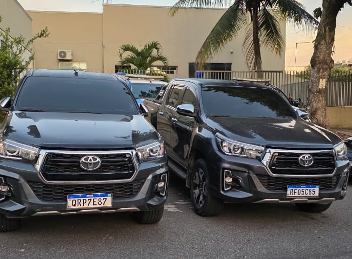 Os PMs, ao chegarem em um dos determinados postos, visualizaram uma carreta cegonha de cor branca, placa não divulgada, com o referido veículo em cima, quando foi realizada a abordagem, sendo identificados dois suspeitos identificados pelas iniciais dos nomes como sendo (A.S.J.A.), 50 anos, e (S.H.J.), 65 anos, que estariam sob a responsabilidade da carreta, que informaram que estariam indo levar os referidos veículos embarcados para a cidade de Fortaleza (CE). Os PMs, ao fazerem uma breve vistoria no veículo citado pela Central, confirmaram que ele estaria ostentando placa falsa RFO 5C85. Já um segundo veículo do mesmo modelo, porém de cor preta, que estaria ostentando placa QRP 7E87, também apresentou adulterações nos demais sinais identificadores, instante em que os dois homens receberam voz de prisão, sendo conduzidos com a referida carreta e demais veículos para a delegacia territorial daquela cidade, onde foram apresentados para a equipe do delegado de plantão, que, após a realização dos procedimentos legais, flagranteou os dois por receptação e adulteração em sinais identificadores veiculares, determinando o recolhimento deles para a carceragem daquela unidade policial, ficando à disposição da Justiça.