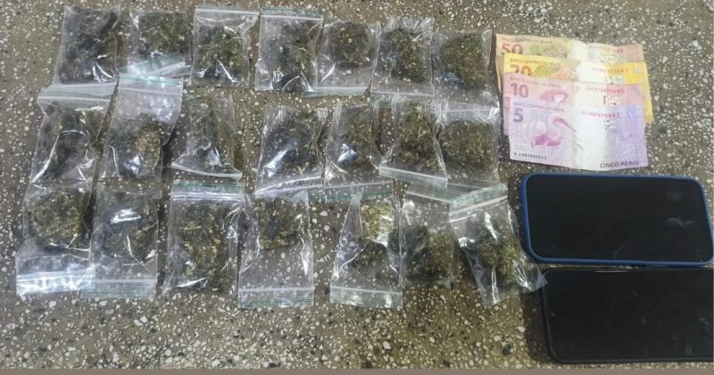 Policiais da CIPE/Mata Atlântica – CAEMA estavam em patrulhamento na cidade de Teixeira de Freitas, na noite desta terça-feira, 02 dezembro, quando ao passarem pela Avenida Amor Perfeito, Bairro Colina Verde, próximo a entrada do residencial Santos Guimarães, quando avistaram um veículo modelo VW/Voyage, cor branca, placa JIK 0859, que ao visualizar a viatura, o mesmo teria tido uma reação na condução do veículo, que chamou atenção dos PMs, que deram ordem de parada, que foi obedecido pelo o condutor, que ao ser realizado abordagem o mesmo foi identificado como “Daniel Couto Pereira Lima”, 39 anos, que teria dito para os militares que seria músico, entrando em contradição ao ser questionado o que estava fazendo naquela região da cidade, ele disse que seria morador de um condomínio próximo daquela localidade. Os militares, ao fazerem uma busca no interior do veículo, encontraram 21 porções de maconha (266 gramas), dois aparelhos celulares e o valor em espécie de R$ 85,00.