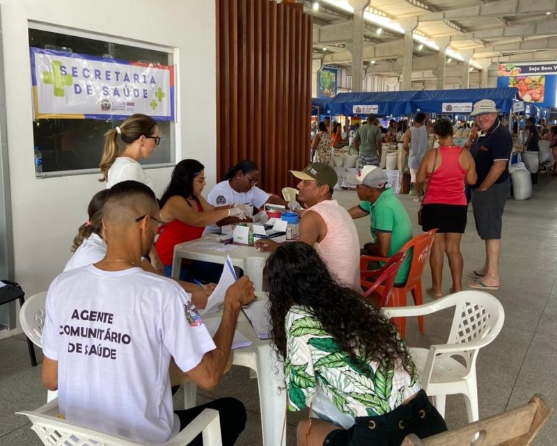Neste domingo, uma das ações foi a realização de testes rápidos e orientações no Mercado Municipal em Mucuri, com a equipe de enfermagem, psicóloga e farmacêutica do CTA – Centro de Testagem e Aconselhamento, com 75 pessoas e 300 testes realizados.