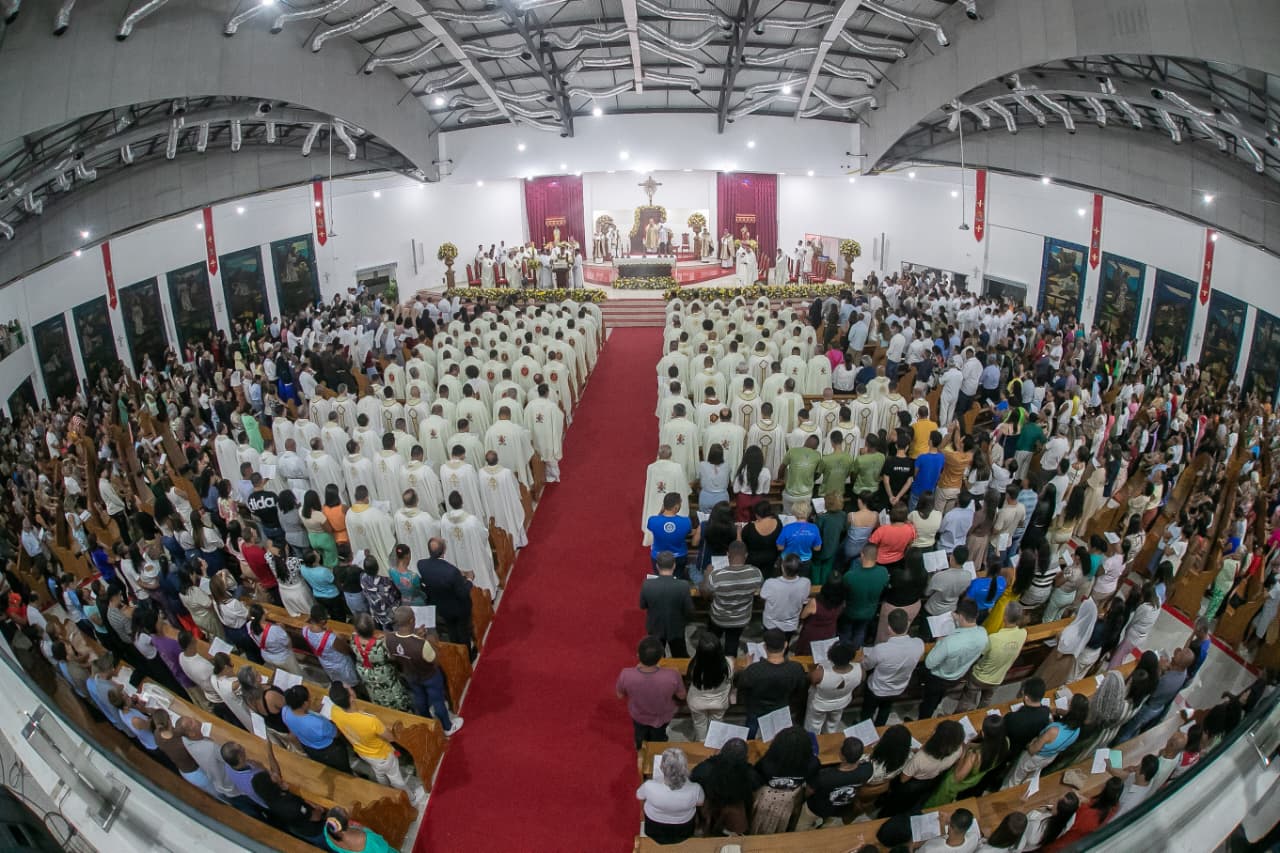 A Diocese de Teixeira de Freitas/Caravelas viveu uma noite histórica nesta terça-feira (7), com a posse canônica de Dom Aldemiro Sena dos Santos como seu 5º bispo. A celebração, realizada na Catedral São Pedro, reuniu milhares de fiéis, além de autoridades civis, militares e religiosas, marcando o início de um novo ciclo pastoral na região.