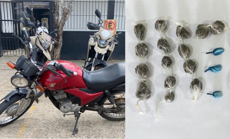 Os Policiais Militares do Motopatrulhamento Pegasus do CPR Extremo Sul, estavam em apoio a unidade da 87ª CIPM de Teixeira de Freitas (BA), nesta terça-feira, 17 de março, quando realizaram a primeira ação de abordagem ao um suspeito que estaria em uma motocicleta de modelo Honda/Titan FAN 150, cor vermelha, placa não divulgada, que segundo os PMs o suspeito que teve apenas a idade informada de 23 anos, teria tentado fugir da abordagem após perceber a presença da equipe, que tiveram que realizarem o acompanhamento por Ruas e Bairros da cidade, conseguindo intercepta-lo na Avenida São Paulo, no Bairro Jardim Caraípe. Os Policiais disseram que, durante a realização da abordagem e buscas, foram encontrados 3 papelotes de cocaína e 15 buchas de maconha, momento em que o suspeito recebeu voz de prisão, sendo conduzido para a delegacia territorial, onde foi apresentado para a equipe da delegada plantonista, Dra. Andressa Carvalho, que realizou os procedimentos legais, tomando as devidas providências necessárias.