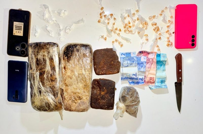 O suspeito “Clayton Ferreira” foi abordado na porta da sua residência, situada na Avenida 7 de Setembro, Centro da cidade, na qual foi confirmada a sua identidade, bem como, ao ser questionado sobre tais ameaças e atividade ilícita, ele acabou confessando que estaria traficando para o chefe do tráfico daquela cidade, conhecido como “Bajon”, alegando dificuldades financeiras de sobrevivência. Ele indicou ainda onde estaria a carga de droga que estaria em sua posse para comercialização, sendo apreendida a seguinte quantidade de entorpecentes: 2,600 kg de maconha; 74 pedras de crack; 20 papelotes de cocaína, e o valor em espécie de R$ 119,00. Ressalva-se que ele teria atribuído parte da droga apreendida a um comparsa identificado como “Mattheus”, vulgo “Babita”, que teria sido preso na semana anterior, e que ele teria deixado a referida droga com ele para guardar antes da sua prisão.