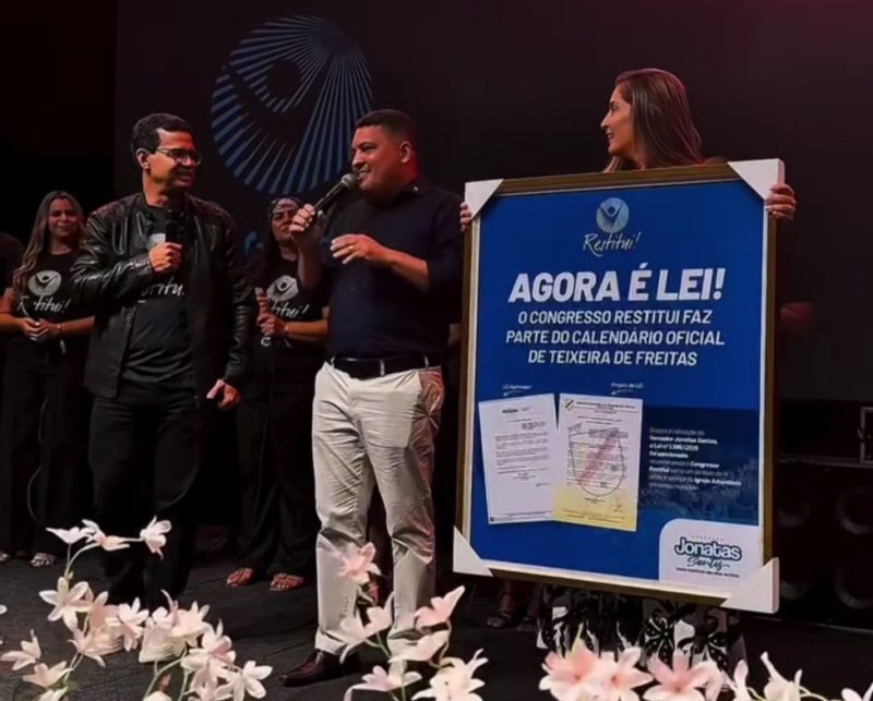 Durante a edição 2025 do Congresso Restitui, que acontece de 24 a 26 de outubro no auditório da Faculdade Anhanguera, na Rodovia BR-101, Monte Castelo, o presidente da Câmara Municipal, vereador Jonatas Santos, fez um anúncio histórico: o evento agora faz parte oficialmente do calendário municipal de Teixeira de Freitas. A medida foi formalizada por meio de uma lei municipal, resultado de um projeto de indicação apresentado pelo próprio vereador, reconhecendo a importância do congresso para a cidade e sua contribuição para fortalecer a fé da população.