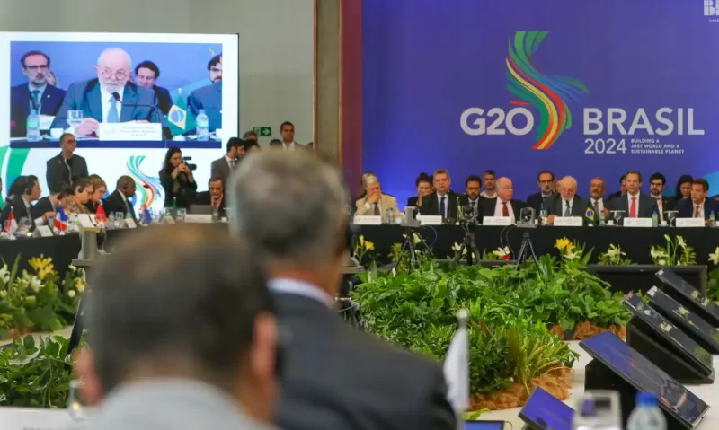 O lema da presidência brasileira do G20 é “Construindo um Mundo Justo e um Planeta Sustentável”.