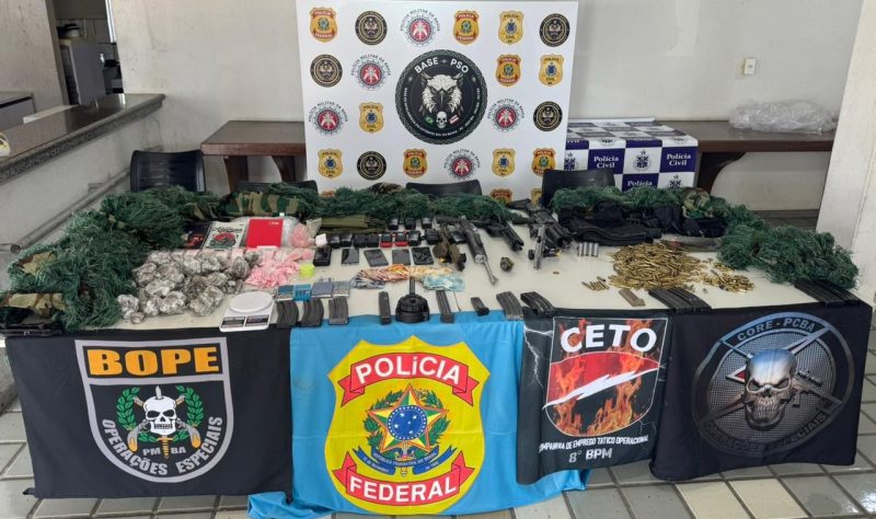 Operação “Vértice I”, realizada pelas Forças Policiais Federal, Civil e Militar em Caraíva, termina com 5 criminosos mortos; fuzil, granadas, submetralhadora e pistolas foram apreendidos