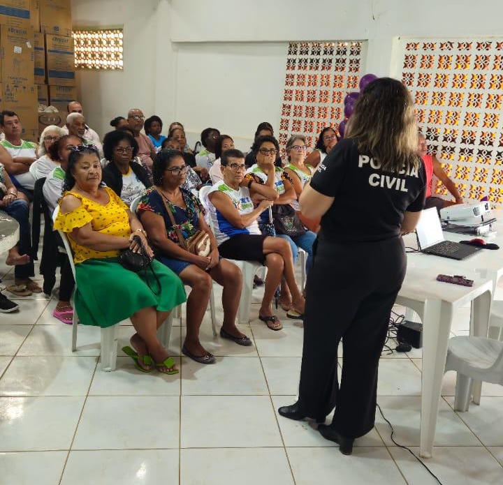 PC/DEAM: Delegada Valéria Chaves participa de palestra voltada para público idoso em CRAS do município do Prado; que teve como tema os “Direitos dos Idosos”