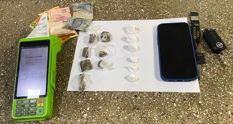Ao fazerem abordagem, o suspeito foi identificado, tendo apenas a sua idade divulgadas, 19 anos, que estaria com 07 buchas de maconha (14 gramas); 06 papelotes de cocaína (12 gramas); 01 máquina de passar cartão; 01 aparelho celular e o valor em espécie de R$ 52,00. Ele recebeu voz de prisão, sendo conduzido para delegacia territorial, onde foi apresentado para a equipe do delegado de plantão, Dr. Bruno Ferrari, que realizou os procedimentos legais e tomou as devidas providências.
