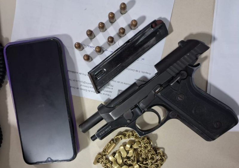 Os PMs prenderam os abordados, que seriam um casal, identificados como “Breno Silva de Jesus”, vulgo “Queimadim”, 27 anos, e “Lourrane Regina Melo de Carvalho”, 25 anos, que estava portando em sua cintura uma arma marca Taurus/PT-HC58, calibre .380, municiada com 10 cartuchos intactos, e a motocicleta que estaria com placa adulterada, sendo do mesmo modelo que teria sido usada no crime do adolescente, além da arma que seria do mesmo calibre. Eles foram conduzidos para a delegacia territorial, onde foram apresentados à equipe de plantão, sendo realizados os procedimentos legais, que resultaram na prisão dos dois por flagrante de porte ilegal de arma de fogo e veículo adulterado.