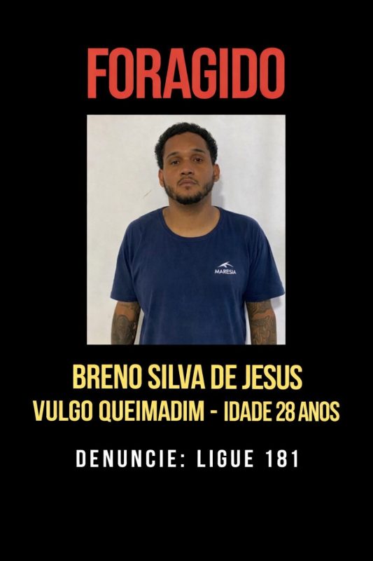 Já o comparsa e namorado na época, “Breno Silva de Jesus”, segue foragido da Justiça, com o mandado de prisão preventiva em desfavor da sua liberdade, para que ele possa responder pelo crime de homicídio custodiado. A Polícia Civil pede para quem tiver alguma informação sobre o seu paradeiro que possa ligar de forma anônima para o Disk Denúncia da Polícia Civil no número (181). Em caso de possível prisão imediata, pode ligar também para o número (190) para que as forças policiais ostensivas possa realizar a sua prisão e apresentação à autoridade policial de uma unidade policial mais próxima.