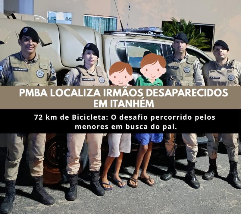 Após receber informações sobre o desaparecimento de dois irmãos menores no município de Itanhém (BA) nesta sexta-feira, 06 de fevereiro, policiais militares da 44ª CIPM iniciaram diligências imediatas com o objetivo de localizá-los. Que, após horas de buscas e troca de informações entre as equipes de população, foi possível localizá-los em uma propriedade rural nas proximidades do Posto de Combustível da entrada para o distrito de Nova Lídice, às margens da BA-290.