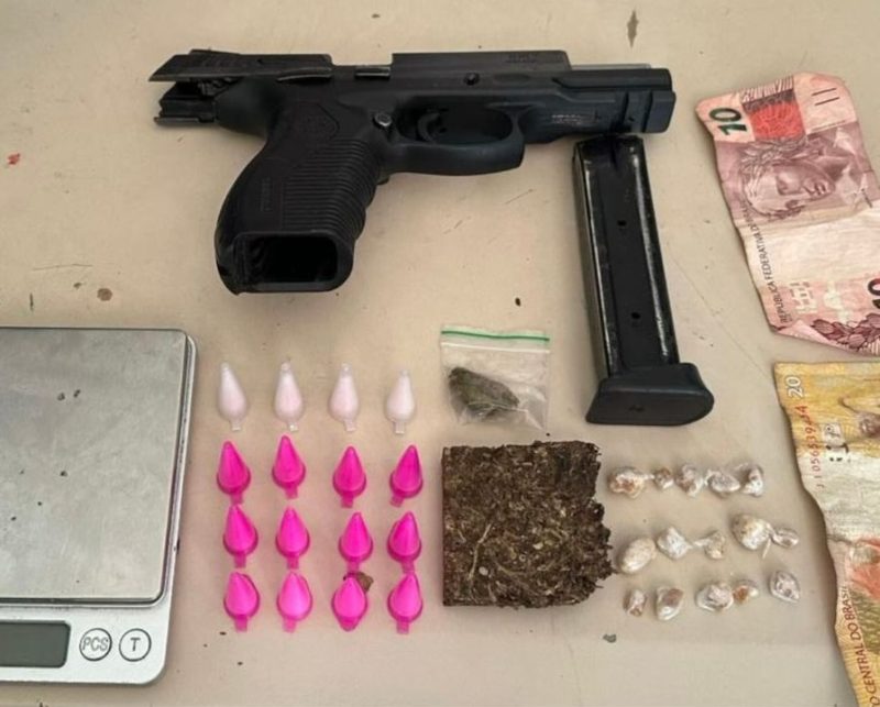 Os Policiais Militares conseguiram identificar a residência onde ele estava, realizaram o cerco e anunciaram para que ele saísse em posição de abordagem, quando foram respondidos com disparos de arma de fogo. Os PMs, realizaram o revide, instante em que houve a troca de tiros, que ao cessar-fogo, os militares avançaram, sendo encontrado o suspeito caído ao solo (chão), com uma pistola marca Taurus, calibre .380, ainda em uma das mãos, e ao seu lado uma sacola, contendo a seguinte quantidade de entorpecentes: 16 pinos de cocaína; 15 pedras de crack; 01 porção e uma bucha de maconha (22 gramas); 02 balanças de precisão, e o valor em espécie de R$ 30,00.