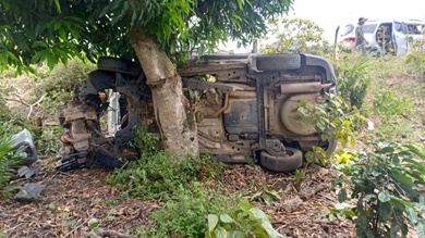 Acidente na BR-101 em Teixeira de Freitas deixa 5 pessoas gravemente feridas; motorista perdeu o controle do veículo, que saiu da pista, tombou e bateu em uma árvore