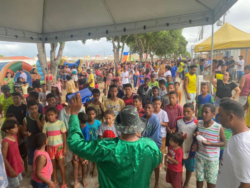Sendo o representante agora daquela comunidade, no Poder Legislativo do município, ele disse que esse era um momento muito esperado por ele, que já vinha com as demais pessoas que participam do projeto junto com ele, promovendo essa festa há 10 anos, para aquelas crianças, e que somente neste ano de 2022, foi possível realizar a festa na sua 11ª edição, sendo assim uma grande realização de foro intimo, pois ele nasceu e foi criado ali, naquela comunidade, e que ele sabe o que é um dia das crianças, sem festa, sem brinquedo, sem presente, sem nada, somente a comida do dia a dia, e agradecendo a Deus por tê-la, que disse ainda: “Eu tenho orgulho de dizer que sou daqui, dessa parte da cidade, foi aqui que minha mãe mim criou, educou-me, junto com meus irmãos. Sendo aqui também que onde passamos por vários dias das crianças como qualquer outro, e hoje, poder fazer esse dia especial para essas crianças, não tem nada que possa se comparar, e nem nada que pague. Um sorriso no rosto dessas crianças é uma realização incomparável a qualquer outra coisa, e isso nos faz acreditamos que podemos muito mais, ontem eu e meus irmãos éramos um deles, hoje nós estamos fazendo por eles”.